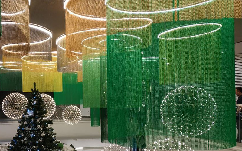 Özelleştirilmiş boyutlarda alüminyum zincir bağlantı ekran perdeleri, sergi salonları, ticari alanlar ve dekoratif uygulamalar için çekici ve işlevsel bir çözüm sunar. 2.0 mm tel yapısı, zarif bir görünüm sağlarken dayanıklılık sunar.