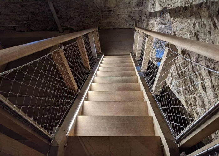 BizimEsnek Kablo Kafesi ile Korozyon Önleyici Merdiven Ağı (SS 304, 50 × 50mm delik)Olağanüstü gerilme mukavemeti, yüksek esneklik, şeffaflık ve geniş açıklık özellikleri sunar. Bu paslanmaz çelik kablo ağ, diğer ağ ürünlerine kıyasla üstün pratiklik, güvenlik, estetik çekicilik ve dayanıklılık sağlar.