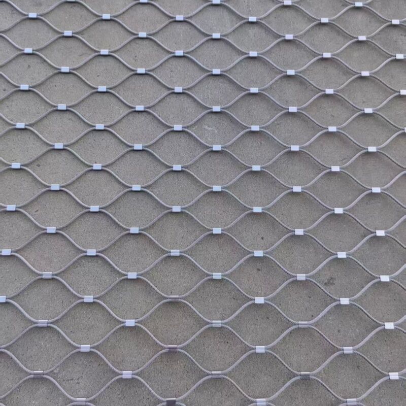 Esnek Paslanmaz Çelik Halatlı Düşme Emniyet Ağları, eşkenar dörtgen örgüye sahiptir, mükemmel esnek performans, neredeyse yok edilemez, en çok darbe ve kırılmaya karşı dayanıklı kuvvet, en çok yağmur, kar, kasırgaya karşı dayanıklıdır.